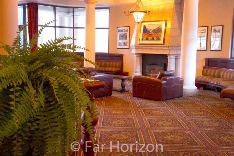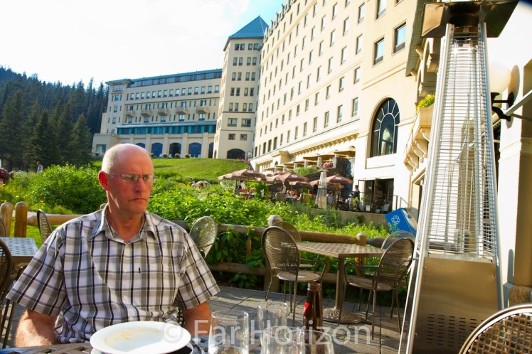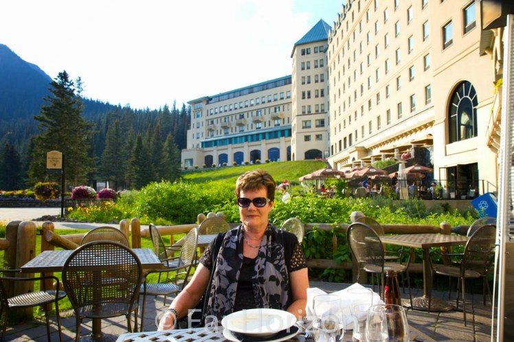 The bus turns into Lake Louise and the view is spectacular. The Chateau stands in front of the most beautiful scenery, majestic mountains surround the beautiful building. But wait there’s more. Our room overlooks the most magnificent Lake Louise, with its emerald green water, which is fed from the glacier we can see on the mountain behind. The water is perfectly still, on this afternoon, there is no breeze, and the mountains are reflected in a mirror image in the lake water.