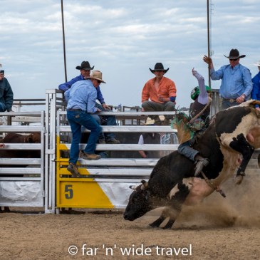 The rider must stay on the bull for eight seconds. Doesn’t sound very long you might think, but when you have a couple of tonnes of angry beast trying to toss you off his back, eight seconds can be a lifetime. … More Bull Riding, Deni Ute Muster